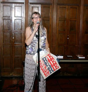 Rinne encouraged audience participation also, having a Spanish-speaking couple sing lullabies in Spanish at the appropriate junctures in specific poems, and passing out gifts of “ghost money,” her own handmade paper crafts; ghost money, as I discovered, is money offered for a good afterlife of a departed loved one or as burnt offerings in many Asian cultures.