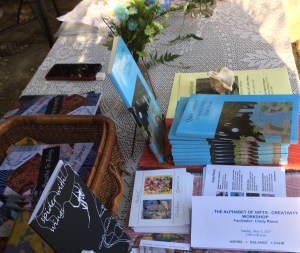 The dappled light added to the ambience as Cindy read from her several collections. A visual artist, Cindy also displayed her work with textiles, and you can see more of it at her website.